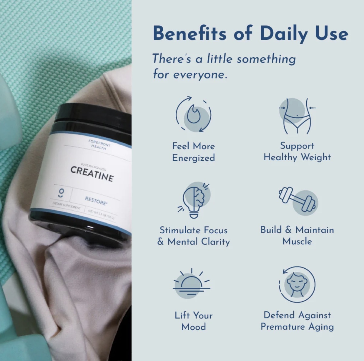 Pure Micronized Creatine from Forefront Health: Reclaim Your Energy Levels, Muscle Tone, and Confidence.
