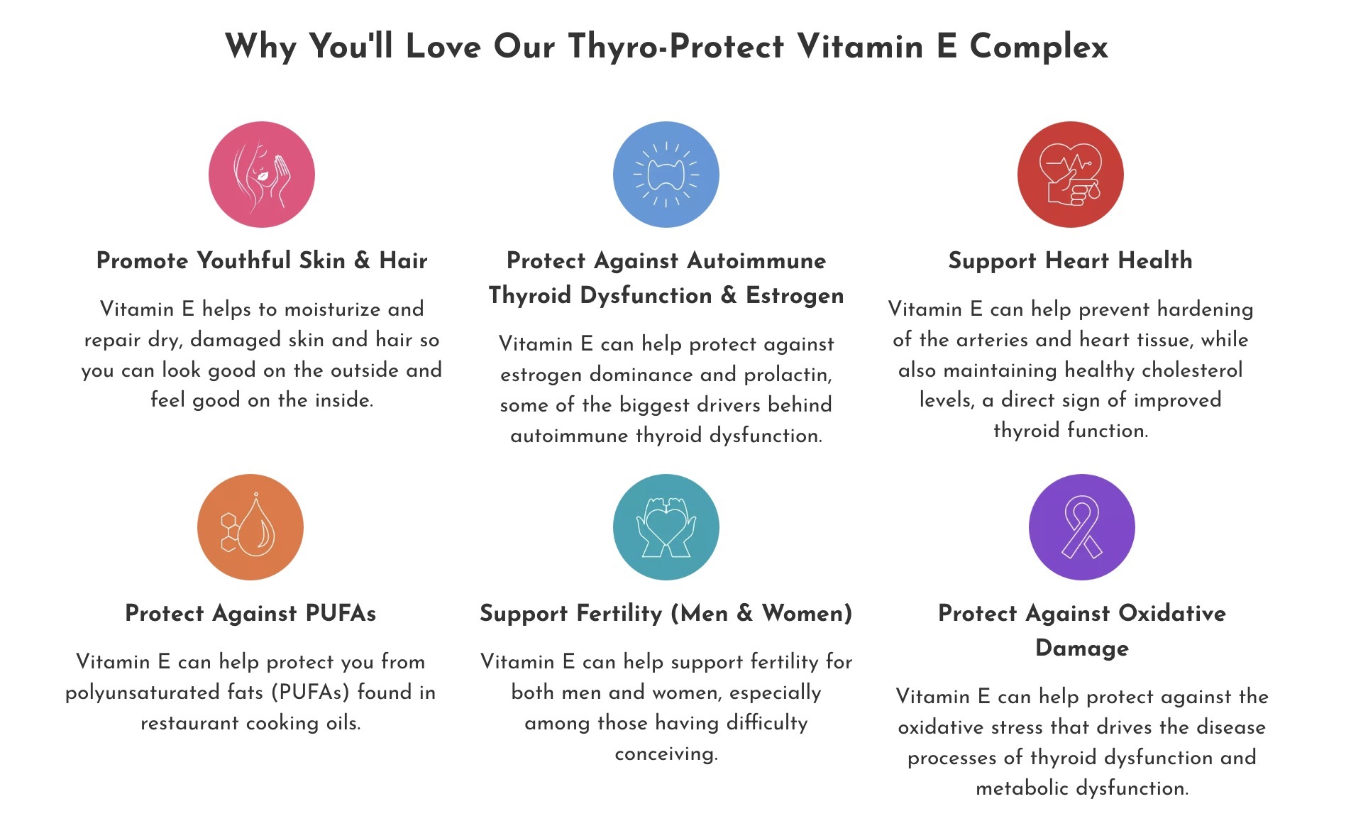Thyro-Protect Vitamin E Complex from Forefront Health: Get back that youthful glow, promote healthy aging, and boost metabolism & thyroid function.