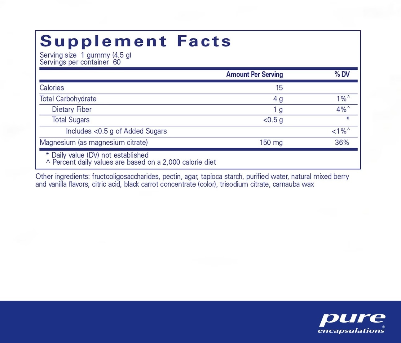Magnesium Gummy from Pure Encapsulations: Supports cardiometabolic, neurocognitive and musculoskeletal health.