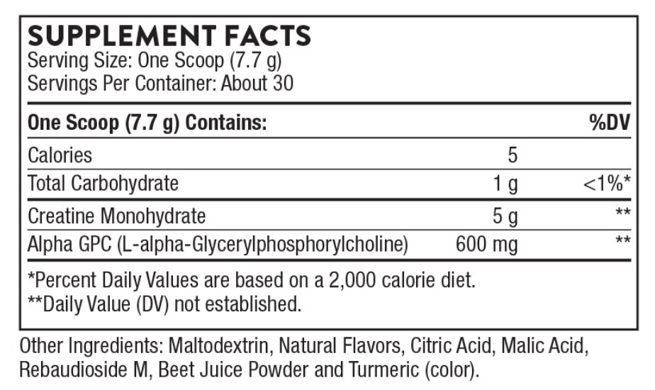 Features of Thorne’s Creatine + Alpha GPC: