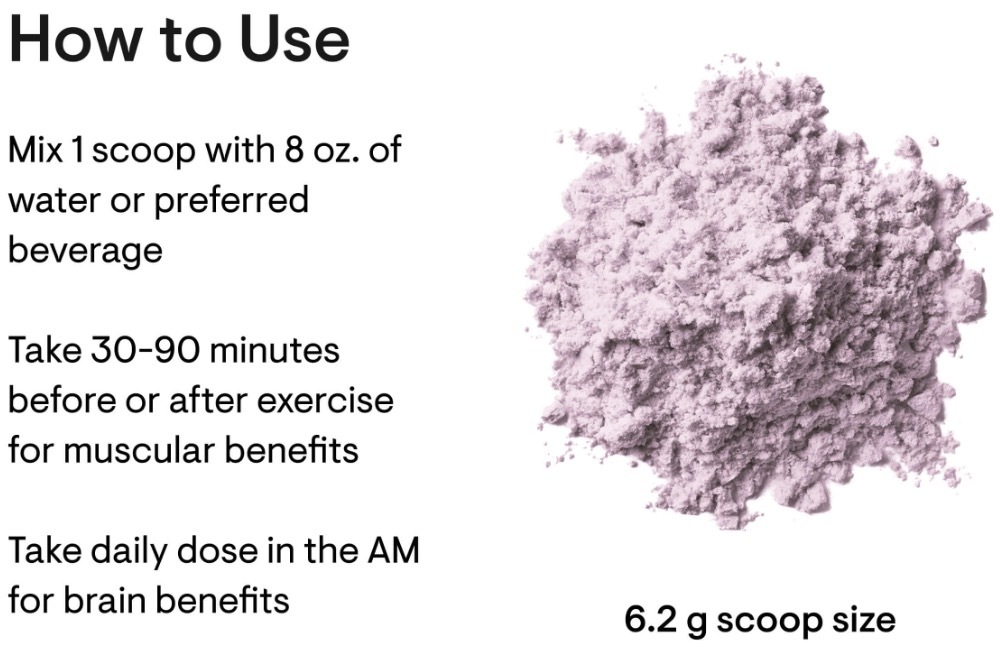 Recommended Use: Mix 1 scoop with at least 8 ounces of water, juice, or preferred beverage daily or as recommended by your health-care or performance professional. Can be used 30-90 minutes before or after exercise.